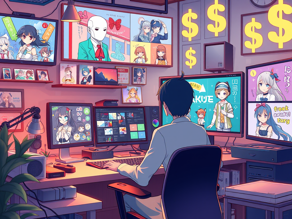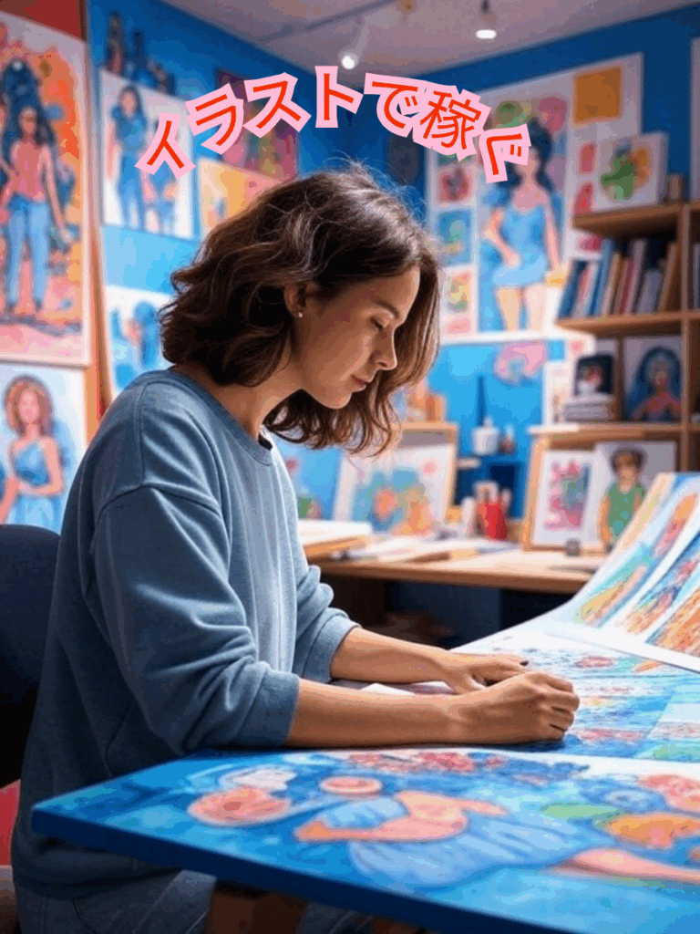 イラストはSNSアイコンやNFTで需要急増。1件3000円~、例: 3000円×17件=5.1万円。MidJourneyなら1画像10分で高品質!